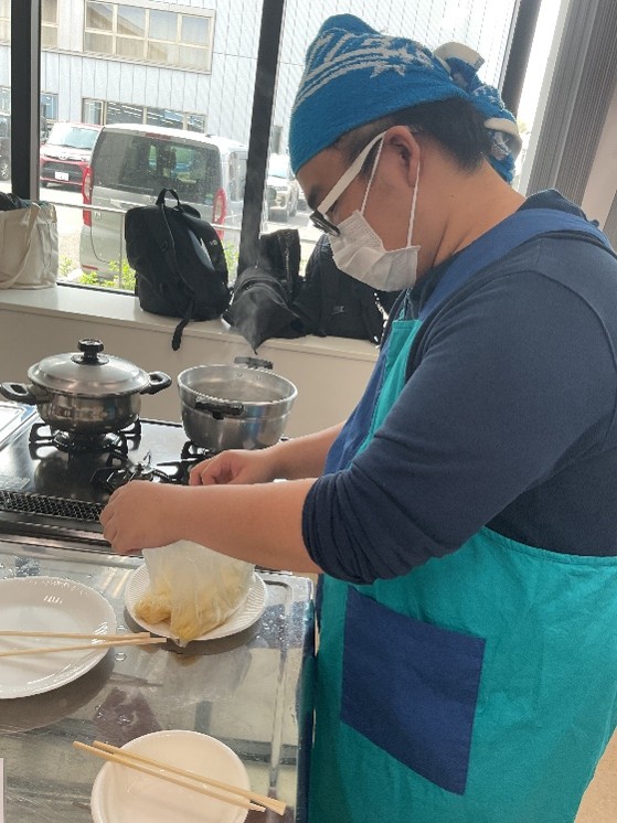 オムライスは写真の通り大成功!味も見た目も、これなら被災時にもほんの少しだけホッとしてもらえそうでした。