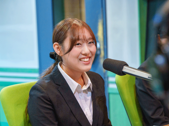 番組DJ・増田佳織さんとのトークでは、観光学部での学び、ゼミ活動の魅力、そしてANAクラウンプラザホテル札幌と連携して企画した“朝食BOX宿泊プラン”について語り、学生の実践的な取り組みを広く発信する貴重な機会となりました。