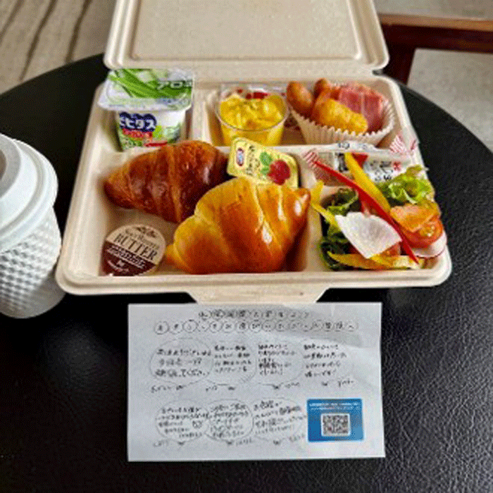 ホテルスタッフが客室に朝食BOXをお届けし、宿泊者が「客室でゆっくり朝を迎える」ことができる新しいスタイル。