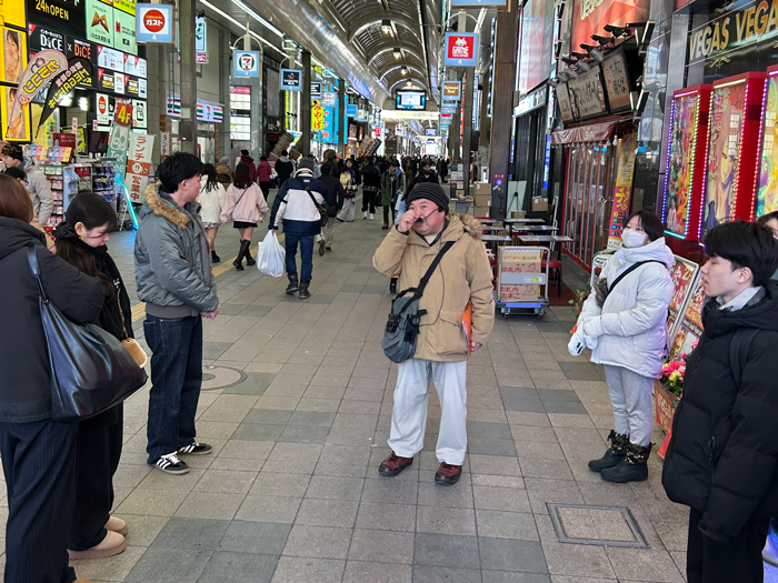 今回のフィールドワークは、本授業を担当する藤崎教授が副代表を務める一般社団法人サッポロコンシェルジュが主催する人気ツアー「ネオン街と寺町のギャップを巡る!隠された歴史探索」として実施されたものです。学生たちは、実際の観光ツアーの現場に触れることで、観光ガイドとして地域の魅力を伝えるための視点や表現方法について理解を深めました。