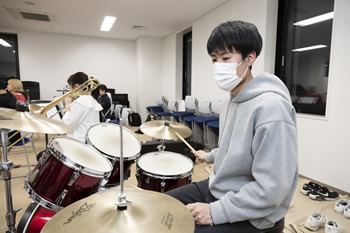 練習は毎週、月曜と木曜の2回。授業終了後に音楽室でミーティングを行った後、個人練習とパート練習、合奏を行います。外部講師の先生が来てくださる日は、指導をメインにしています。 学年も学科も違う部員が集まっているため、お互いの考え方に歩み寄り、意見交換しながら活動しています。部員みんなにとって、リラックスできる息抜きの場になっている、そんな部活です。
