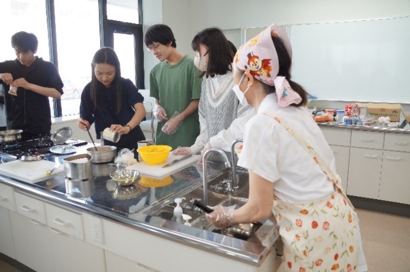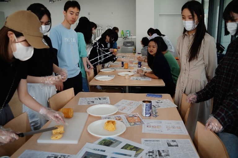 災害時における備蓄食として、日北自動車工業株式会社様から寄贈された「救缶鳥」(パンの缶詰)の提供を受けて、基礎演習のテーマである地域との連携を意識するために社会人教養楽部の方々と一緒に「ご近所炊き出し訓練」を想定して実施しました。