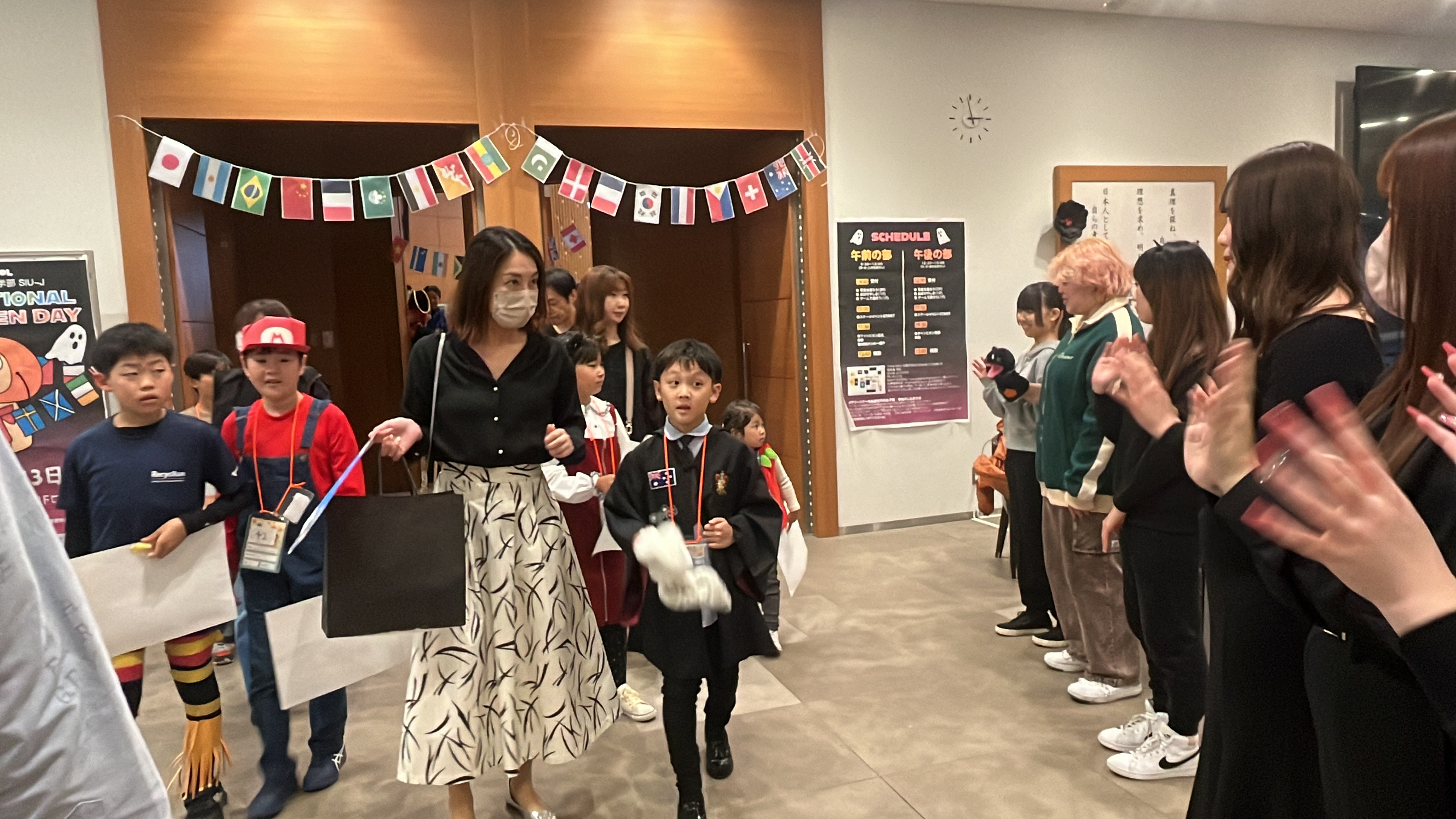 午前・午後の部合わせて約200名のお子さん、そしてご家族を合わせると450人以上の方が来場されており、会場となった2号館は多くの方が英語とふれあいながら、楽しそうな声や、家族で写真を撮る姿であふれていました。