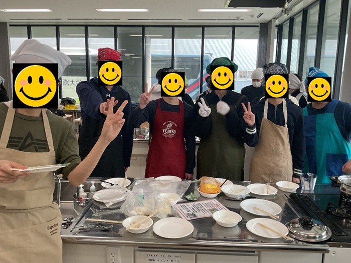 上手に料理ができたかということ以上に「協働」が基礎演習の大切な目的です。みんなで役割を分担して、後片付けまでしっかり取り組んでいました。頼もしい!