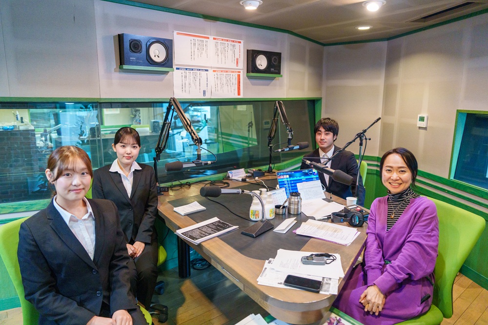 番組DJ・増田佳織さんとのトークでは、観光学部での学び、ゼミ活動の魅力、そしてANAクラウンプラザホテル札幌と連携して企画した“朝食BOX宿泊プラン”について語り、学生の実践的な取り組みを広く発信する貴重な機会となりました。
