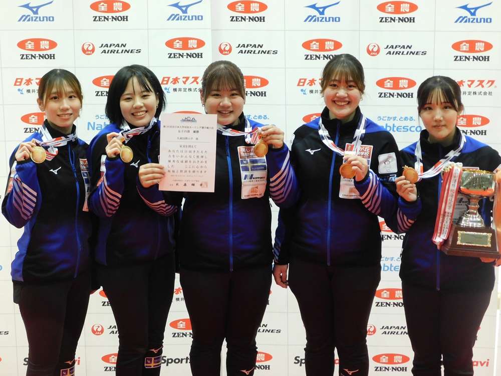 男子チームは、予選で自らのミスから失点につながる場面もあり、全勝対決となった北海道大学戦に敗れ、不安を抱えながら決勝トーナメントへ進みました。しかし、その経験を糧に最終日は一転。準決勝を快勝すると、決勝では第1エンドで4点を奪われる苦しい展開にもかかわらず、その後は安定した戦いぶりで相手に1点も許さず逆転勝利。見事、3年ぶり3回目の優勝を果たしました。