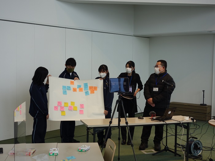 今回のテーマは「ふらのの水インフラ維持と観光まちづくりを考える」で、まず、富良野高校と札幌国際大学それぞれの調査内容に関するプレゼンテーションを行いました。次に、北海道大学からの研究者も一緒にグループディスカッションに参加し、富良野の水の価値を持続可能なものにするためにわたしたちができることは何かを話し合い、最後にグループごとに発表を行いました。